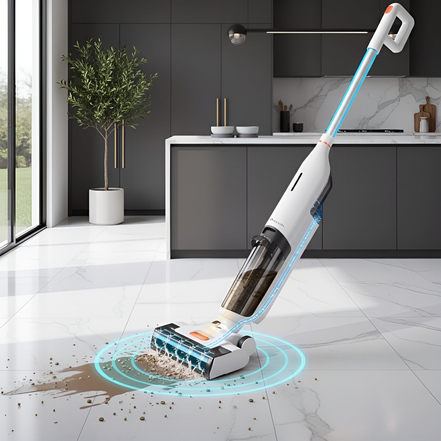 Il aspire, lave et nettoie en une seule étape pour un sol impeccable rapidement.