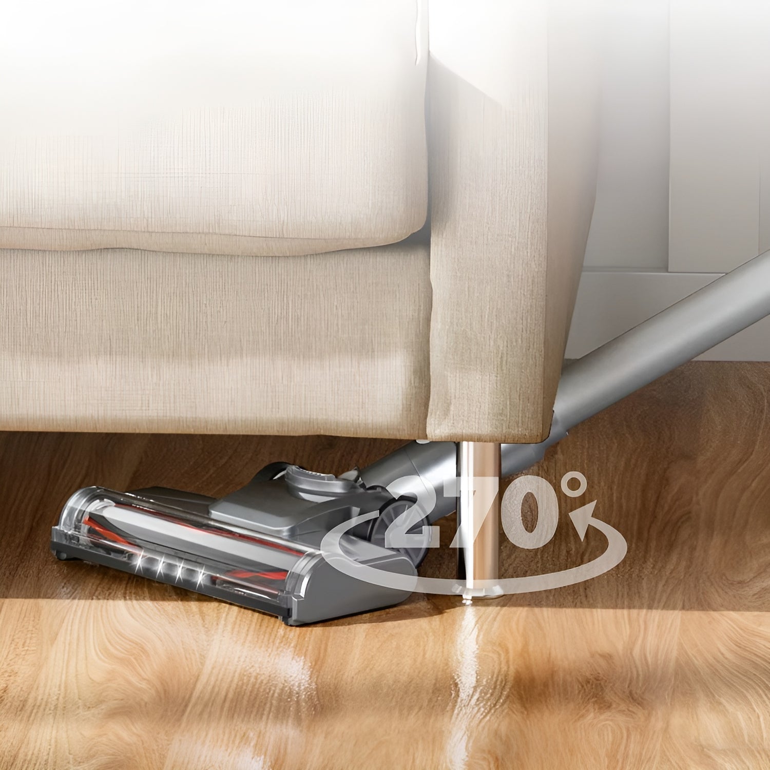 Lat ête ultra-flexible à 270°et le design plat permettent d’accéder facilement sous les meubles : aucun recoin ni bas de canapé ne vous résiste.