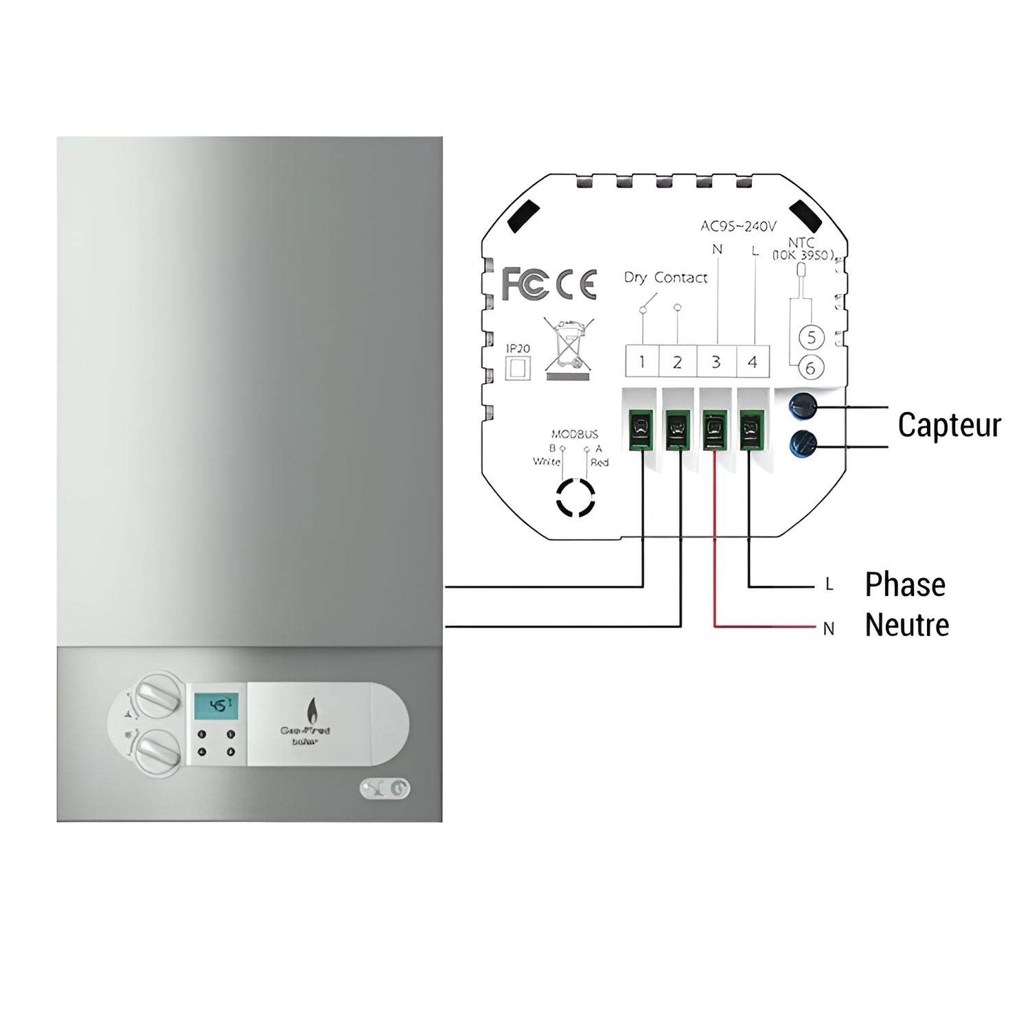 Le thermostat est compatible avec la plupart des chaudières, chauffages au sol et chauffe-eaux. Si vous avez un modèle plus ancien, consultez un professionnel pour vérifier la compatibilité.